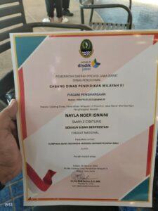 Alhamdulillah atas nama Nayla Noer Isnaini kelas XII IPS 1 Berprestasi Tingkat Nasional. Terima kasih kepada warga sekolah terkhusus kepada kepala sekolah dan dewan guru atas bimbingan nya. Kedepannya Mudah mudahan makin banyak yang berprestasi. Aamin